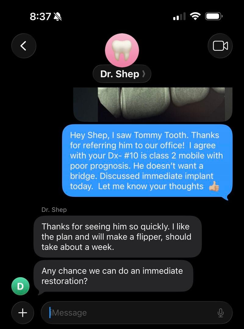 It’s often a quick text or email exchange between a referring general dentist and a receiving specialist. A photo of an x-ray. A short note about symptoms or urgency. It’s fast, convenient, and—when everyone is juggling packed schedules—often the easiest way to move a patient’s care forward.